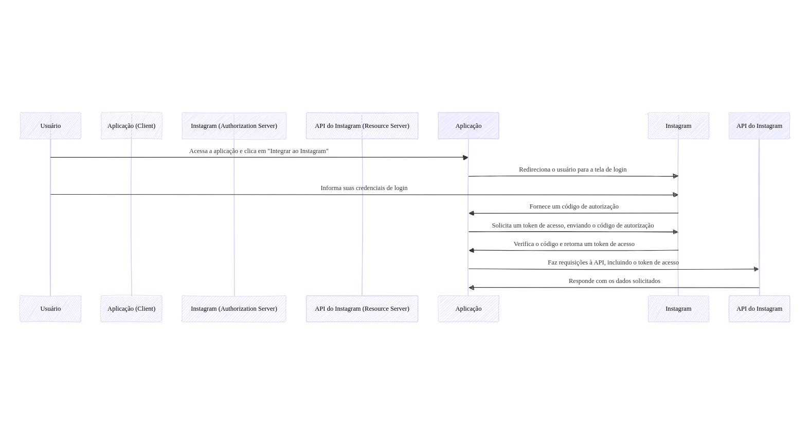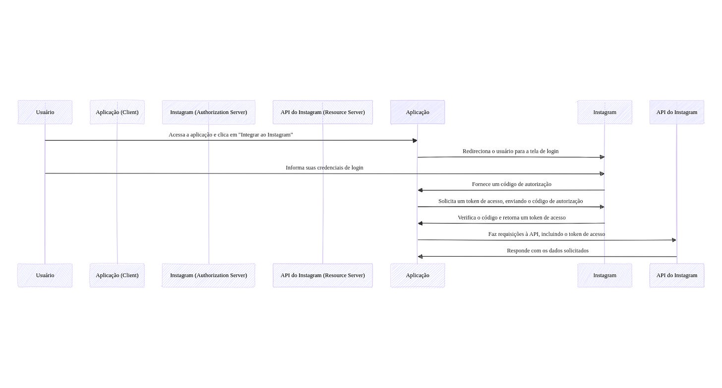 Para entender melhor, vamos supor que você desenvolveu uma aplicação que utiliza dados do usuário do Instagram, então vamos simular como seria um fluxo básico de autenticação via OAuth 2.0: